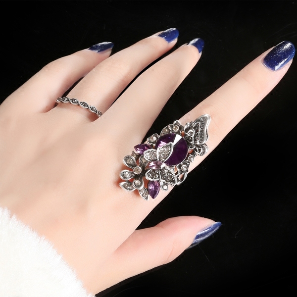 按以下按鈕新增 韓國誇張蝴蝶藍寶石戒指女日韓飾品潮人食指裝飾指環個性兩件套戒 到喜愛產品列表